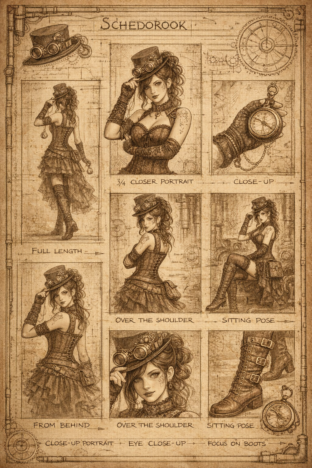 Хочу снять тёмную, атмосферную фотосессию в жанре dark romanticism со стимпанк-настроением. Меня цепляет сочетание романтики, меланхолии и винтажной механики: корсеты, металл, часы, фактура ткани, жесты и взгляд. Это история про настроение и образ, а не про сюжет — немного мрака, немного чувственности и визуальной драмы.